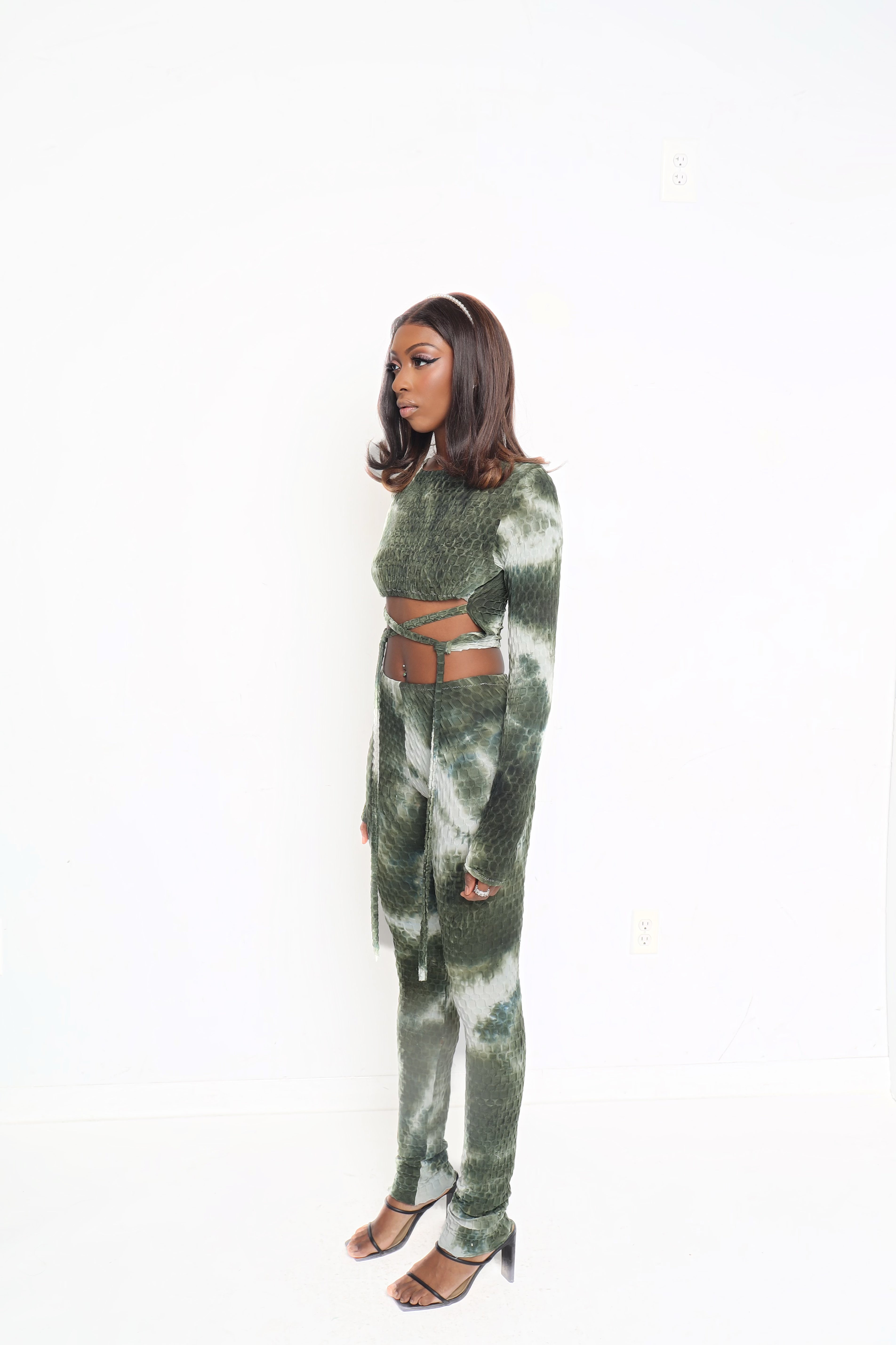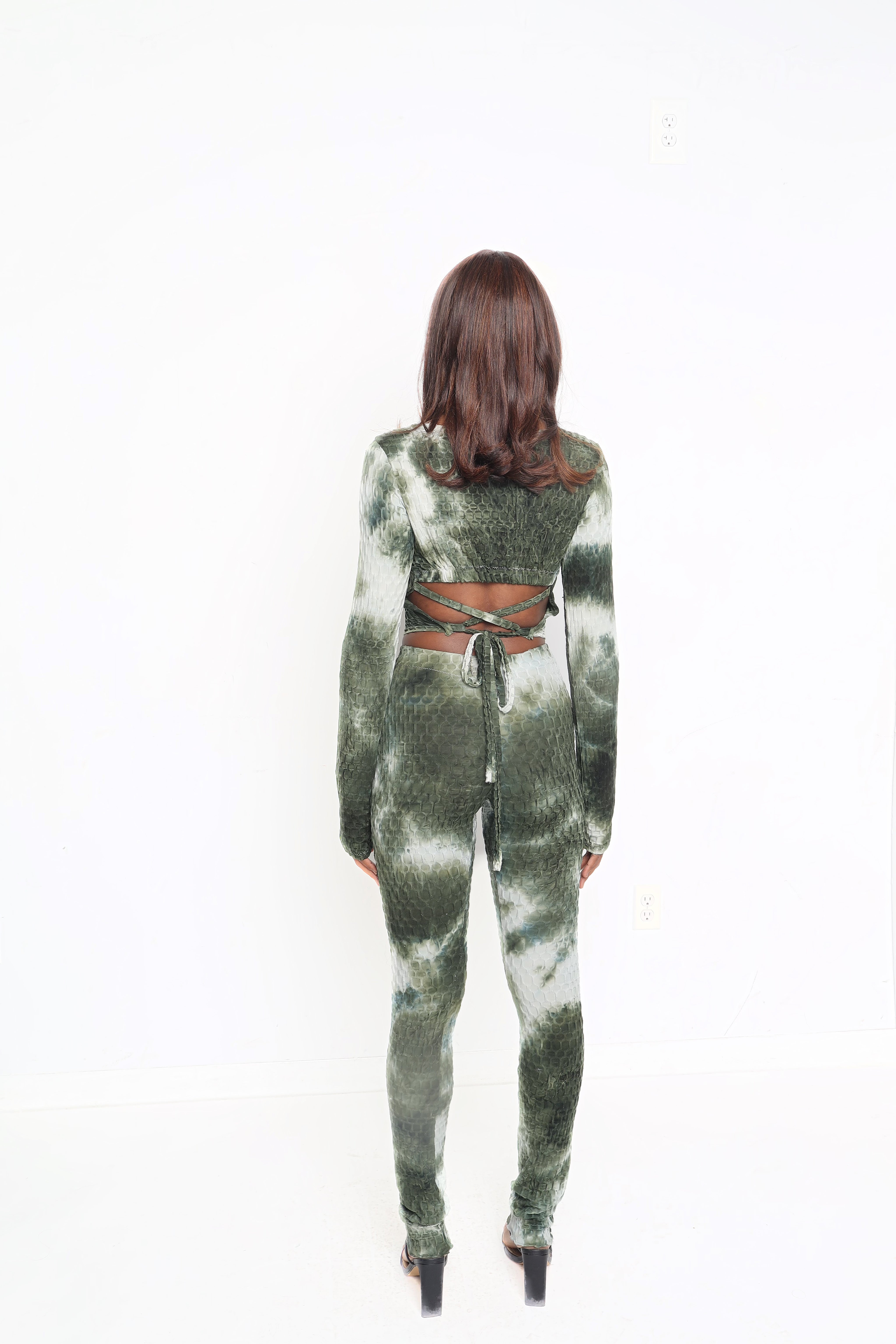This set features a versatile top that can be worn front or back, with adjustable ties to customize your perfect fit, this set is all about playful style and comfort! The stretchy fabric gives it a flattering, form-hugging fit. Whether you're dressing it up or down, you'll love the endless possibilities this set brings!
